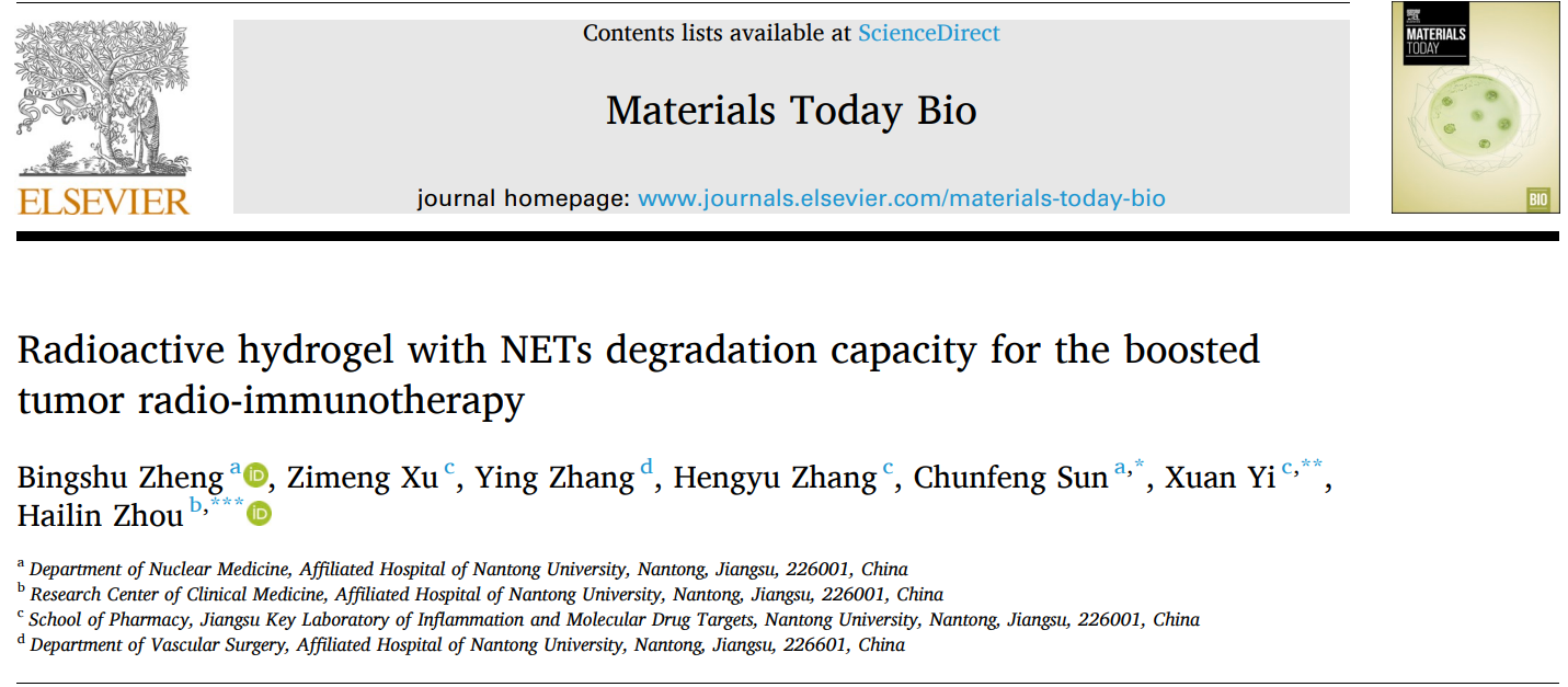1.研究背景:放射性同位素治疗面临两大瓶颈:一是核素瘤内滞留期短;二是放疗诱导的微环境免疫抑制。后者主要源于电离辐射诱发的中性粒细胞胞外诱捕网(NETs)异常聚集;该致密理化屏障不仅直接介导肿瘤放射抵抗,而且严重阻滞效应T细胞浸润,最终削弱系统性抗肿瘤免疫并促发远端转移。